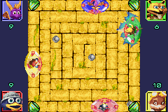 Spyro BallThe twist here is that there are balls that will attack you. You'll need to avoid these. No magnetism here I'm afraid. This is doen by several items that will popup throughout play that will either help or hinder you. These are; Reverse Controls, Disable Ship, Decrease Traction and Increase Speed. If the ball goes through the item in the middle, the next victim it hits will be suffering the ailment that it has just picked up. You also have 20 lives in this one. |